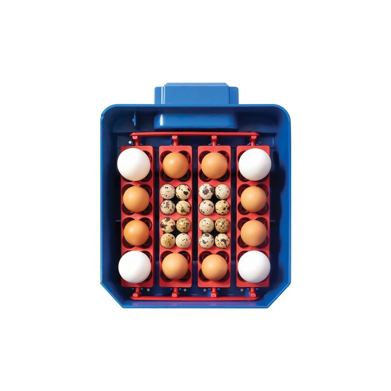 Capacités : 16 oeufs (poules, oies, dindes) ou 64 petits oeufs (cailles, perdrix)