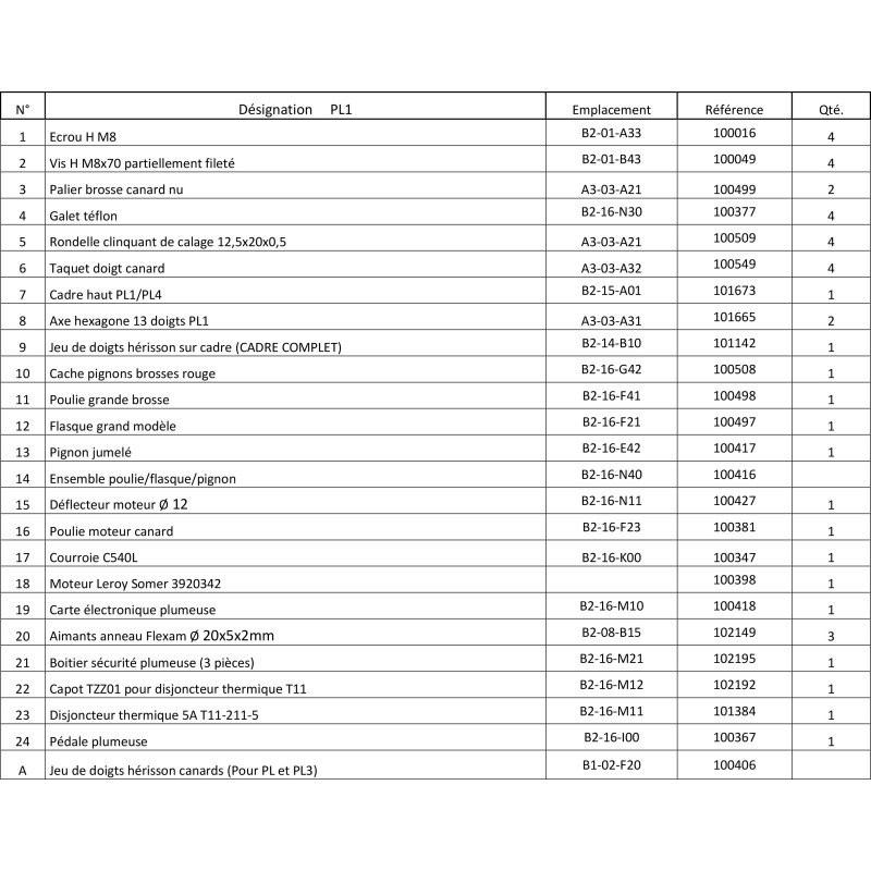 Palier plumeuse PL1 nu