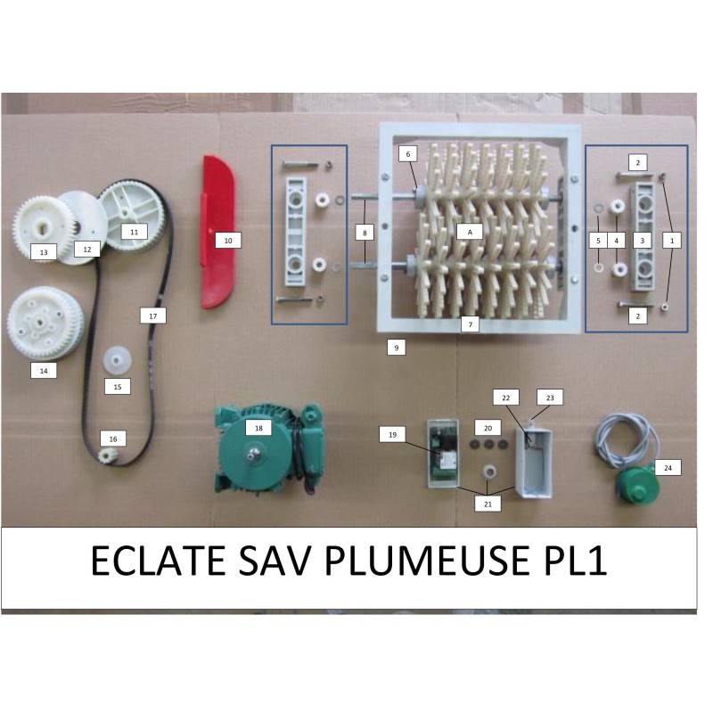 Sous la plumeuse se trouve un bac de récupération des plumes.